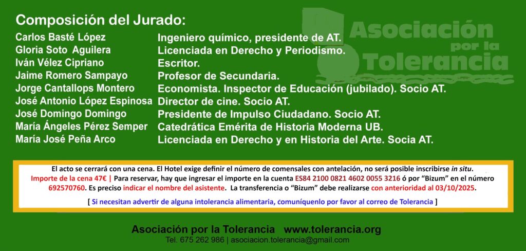 12 de octubre de 2025 Redacción Aixeca’t-Levántate Agradecemos a la Asociación por la Tolerancia el compromiso incansable en contra de la